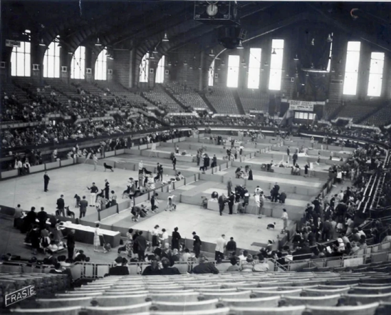 In the early years all forms of advertising for upcoming shows were tried from hired people walking streets with signs to stickers on taxis, street cars, to churches, libraries, lamp posts, etc. None seemed to have a great impact in bringing in spectators. Also in the earlier years at several shows a club officer would be the Superintendent for the show in order to save money. The fee for a superintendent in the 1920s & 1930s would have been $200-$250, the club would pay postage. From May 1933 until September 1935 no records were found. On September 27, 1935 H.K.C. was recognized with only five members and at that time it was voted on to not have any associated members. The next show was September 1936 called “State Fall Show” then June 6, 1937 a one day All-Breed show. In March 1938 six new members were added to the club making a total of 11 members. The spring show of 1938 lost $500. For the fall show of 1938 Albert Meyer once again volunteered to be superintendent and the club showed a small profit.